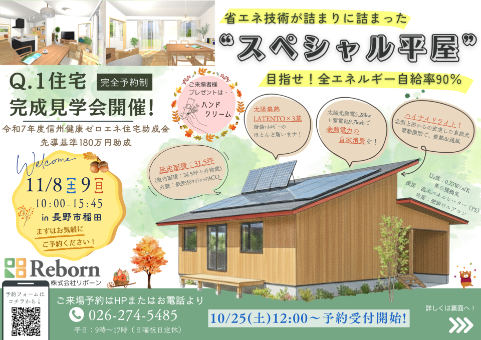お施主様のご厚意により、2025年11月8日(土)・9日 (日) 長野市稲田にて