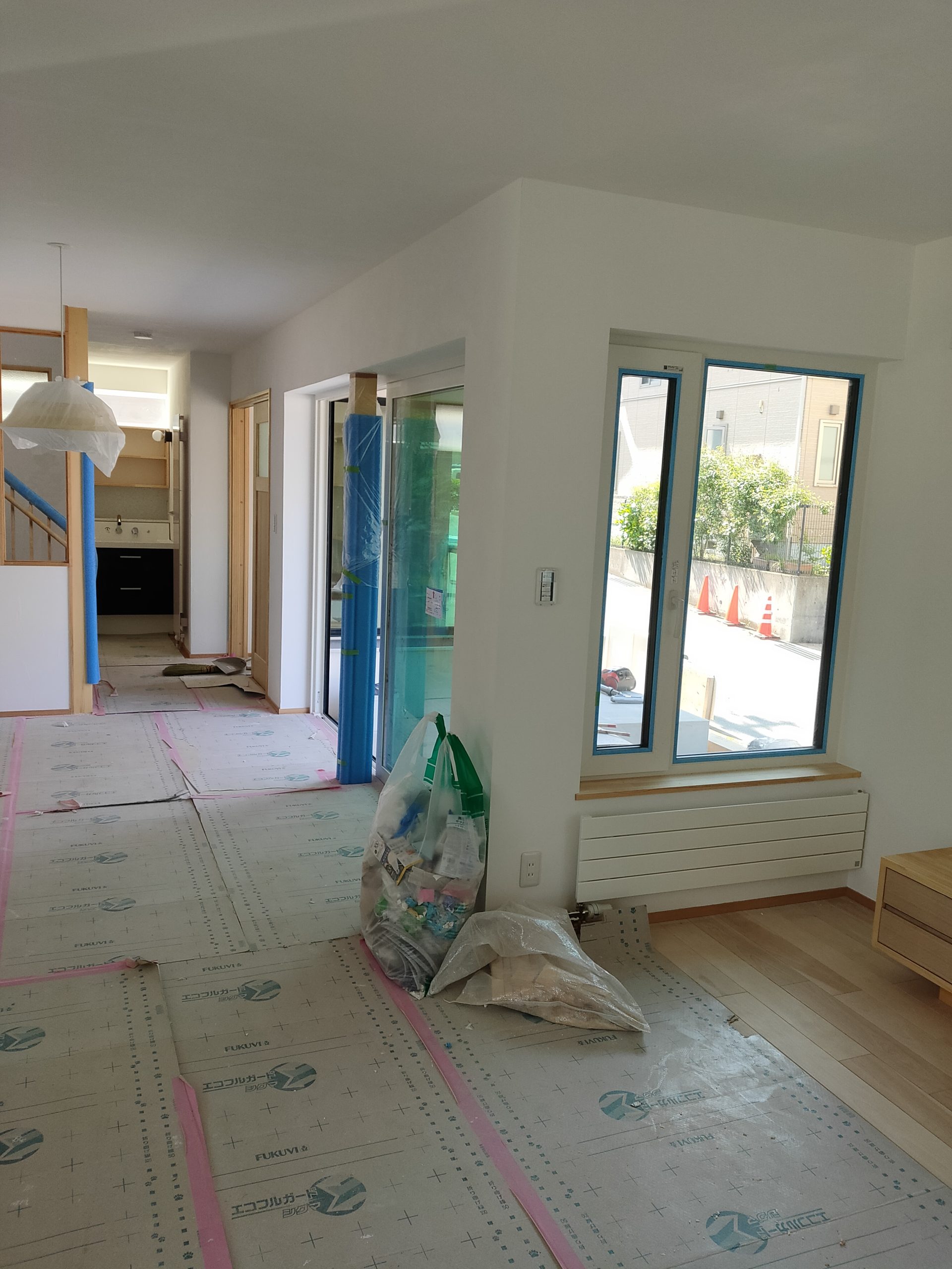 養生が剥がされ、キレイにお清掃されました。養生はぎ途中の写真です↓