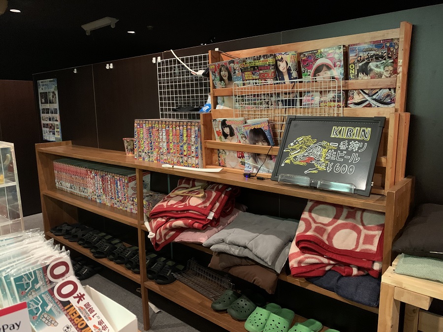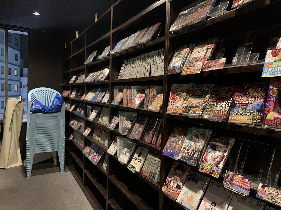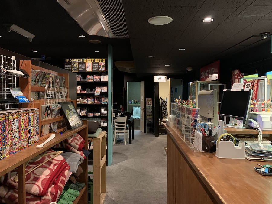 計19ブース、シャワールーム、本棚、コミック、ドリンクコーナー、受付カウンター、厨房などあり。