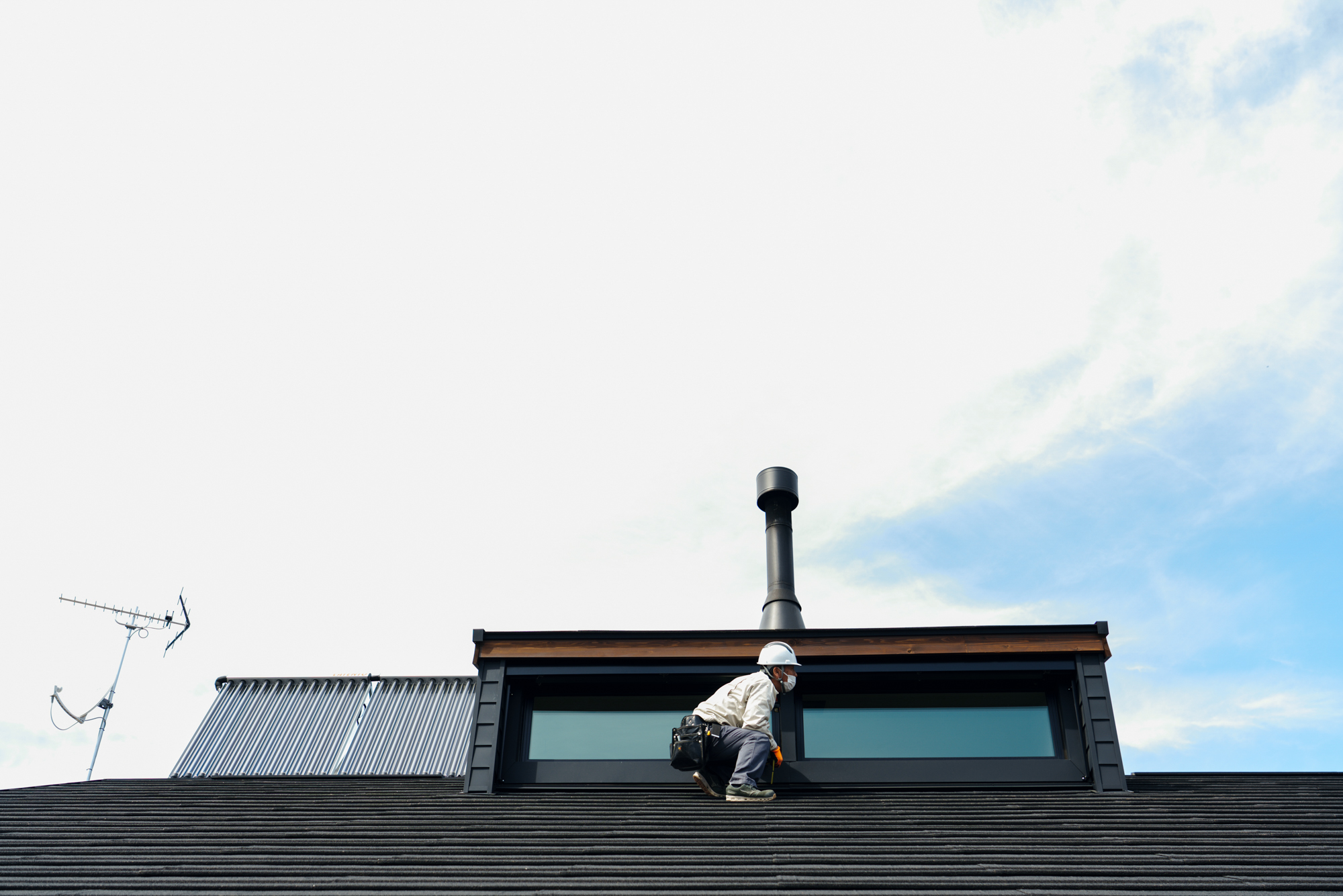- 外から見た越屋根部分。屋根の一部を立ち上げ、開口を設けています