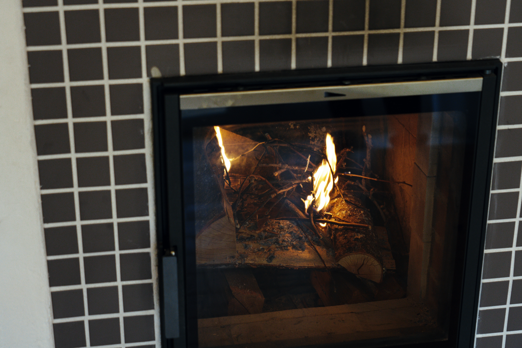 - 焚き付けは主に妻が担当。燃える薪の香りも心地よさの一つ
