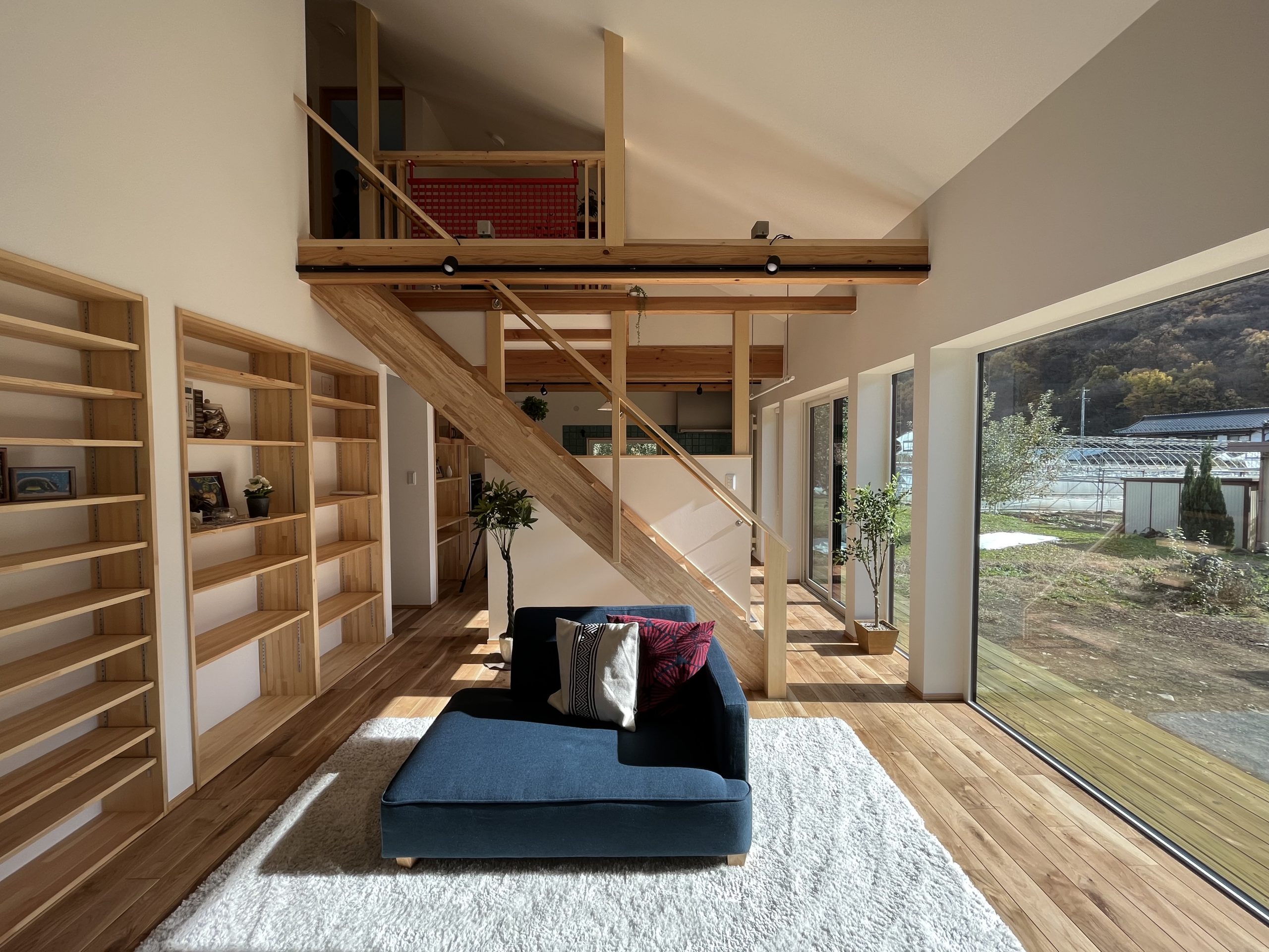- 大きな窓から日が差し込み、明るく開放感のあるリビング。リビング階段憧れます~