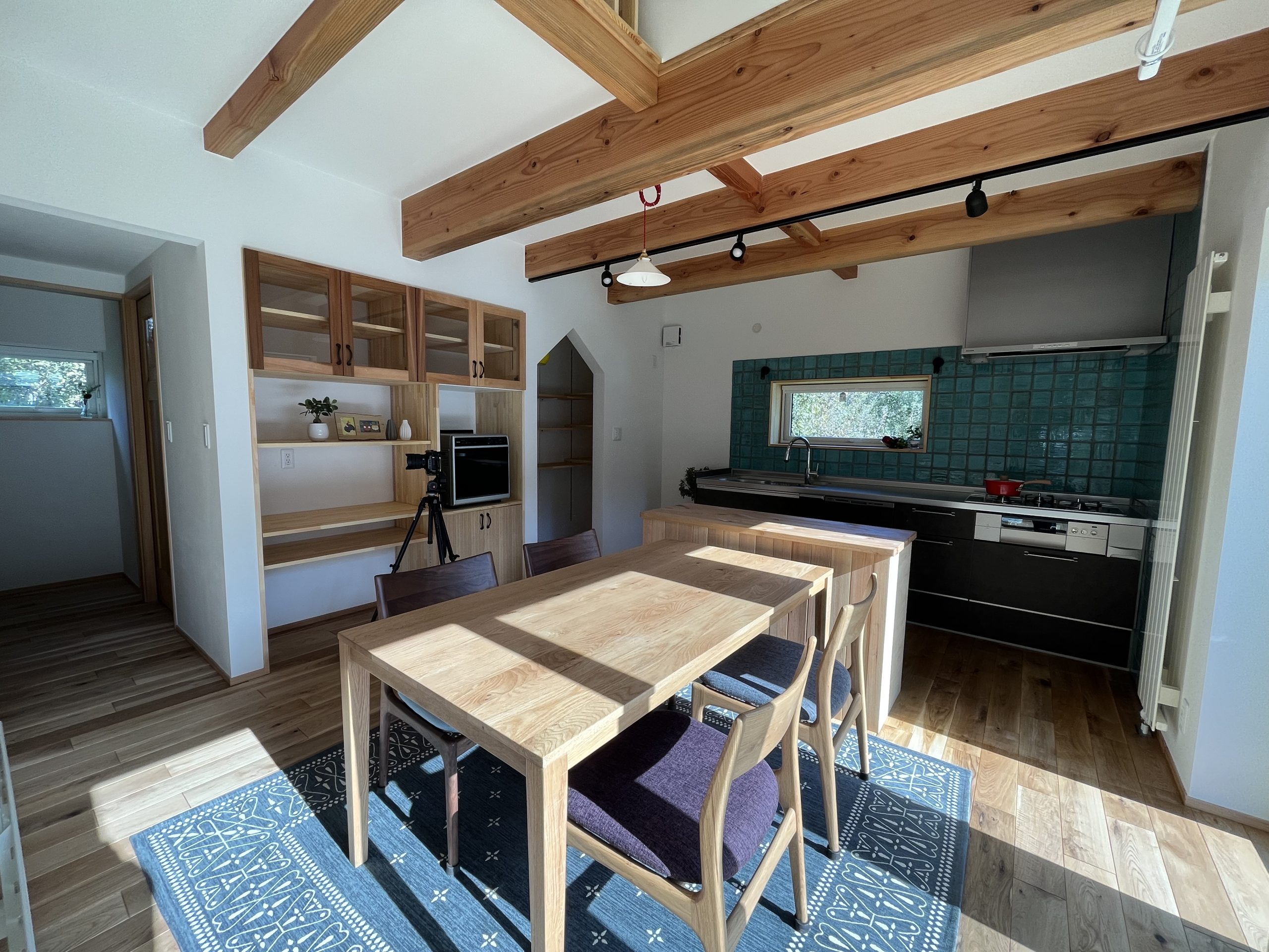 - 天井梁がアクセント!壁付けキッチンで広々♪パントリーもありますよー