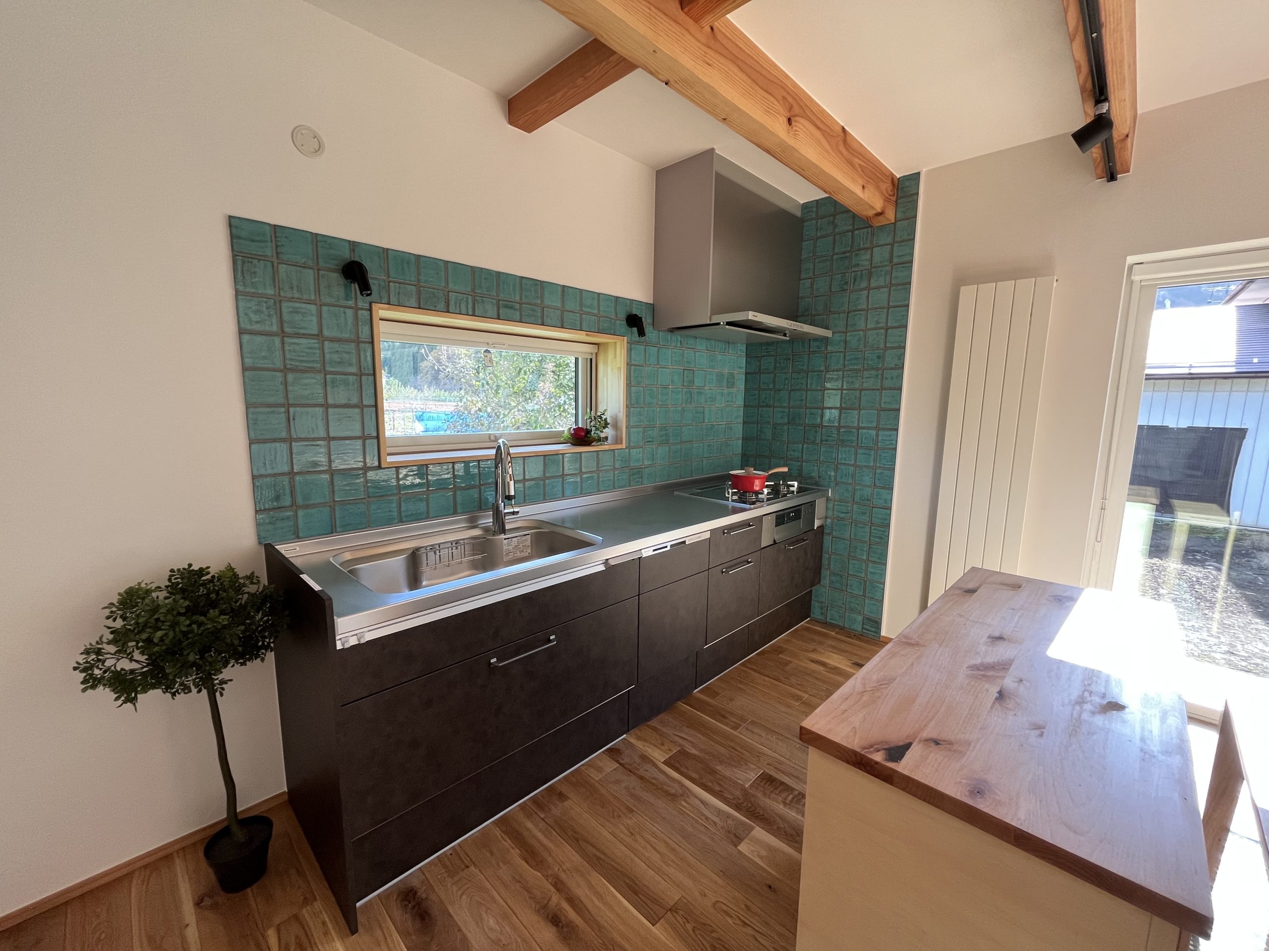 - 壁付けキッチン窓から望む景色は四季折々楽しめますね♪さいこー