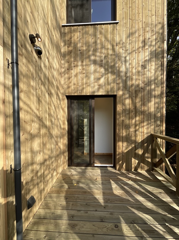 床面積は31.5坪とさほど大きくはありませんが、高低差のある敷地で3階建てと見間違えるほどの高さ。