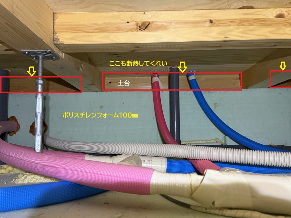 ここにも30㎜程度の薄い断熱材でもいいので必ず断熱しましょうね。