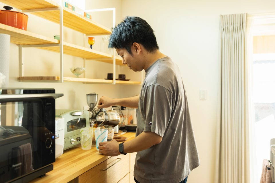 「断熱のことも間取りの理由も、塩原さんが丁寧に理論的に説明してくれました。当時僕たちは平屋を希望していたのですが、平屋のメリットもデメリットもフラットに説明してくれて、そこも信頼できましたね。老後の生活や、将来的に家を誰に引き継ぐのかまで考えた方がいいことも、改めて気付かされた。断熱の話を聞いた時に『お二人は勉強不足ですよ』と言われたことが印象的でした」