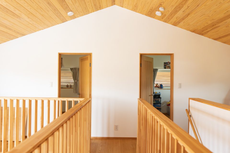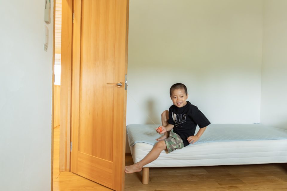 3室の子ども部屋は、それぞれ独立した空間。当初は北西にある2部屋を仕切りなしの広い空間にし、将来的に子どもが大きくなったら間仕切りを設ける計画でしたが、耐震性能や、塩原さんからの「今は子ども同士でもプライバシーが大事」といったアドバイスを考慮し、最初から壁を設けることにしました。震度6強の大地震に対しても倒壊や崩壊しないとされる耐震等級3を実現しています。