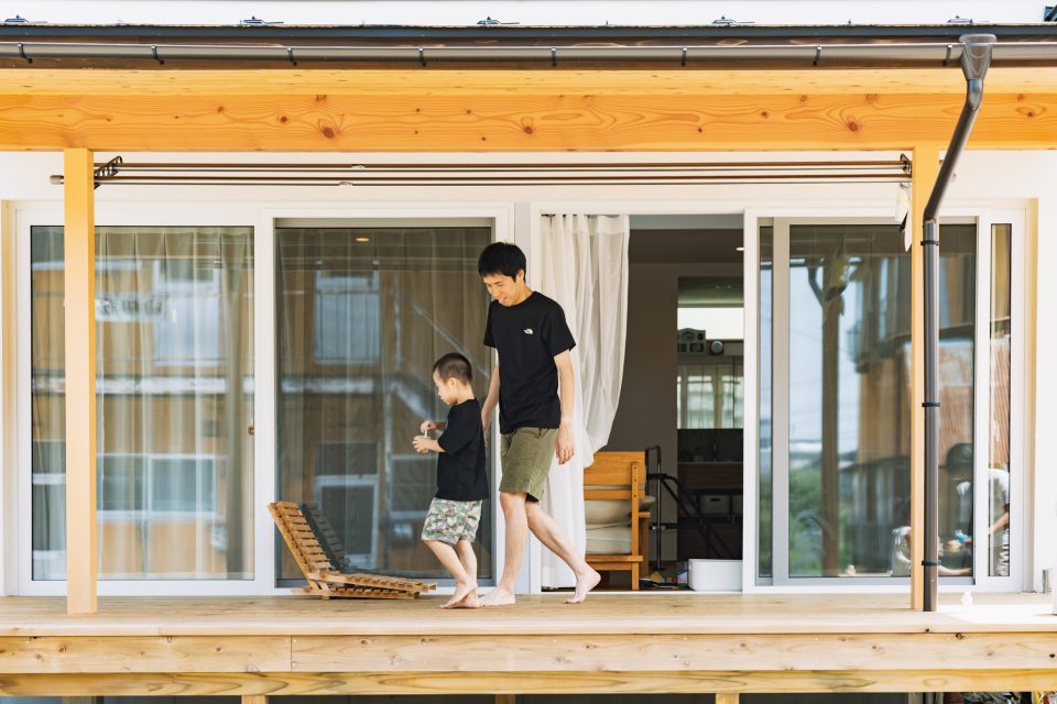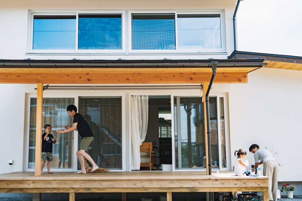 「デッキはここまでの広さはイメージしていませんでしたが、使い心地はすごくいいですね。洗濯物を干したり、子どもたちが寝転がったりして遊んでいるので、作ってよかったです」