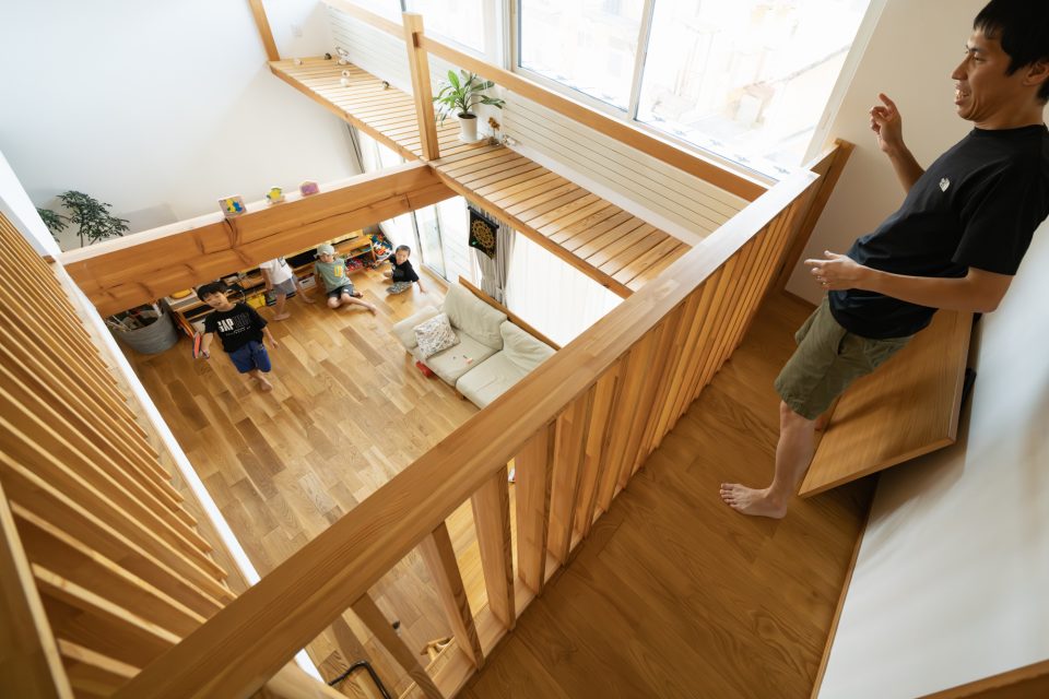 「実際に住んでみると、こんなに吹き抜けが広くなくてもよかったかなとは思いますが(笑)、室内のどこにいても子どもたちの気配を感じられ、それぞれの声が届くうれしさや安心感もありますね」