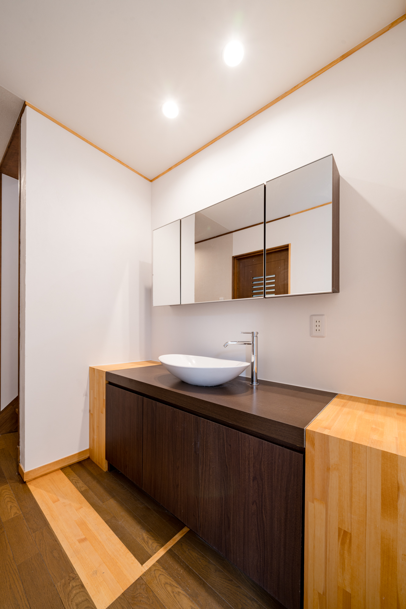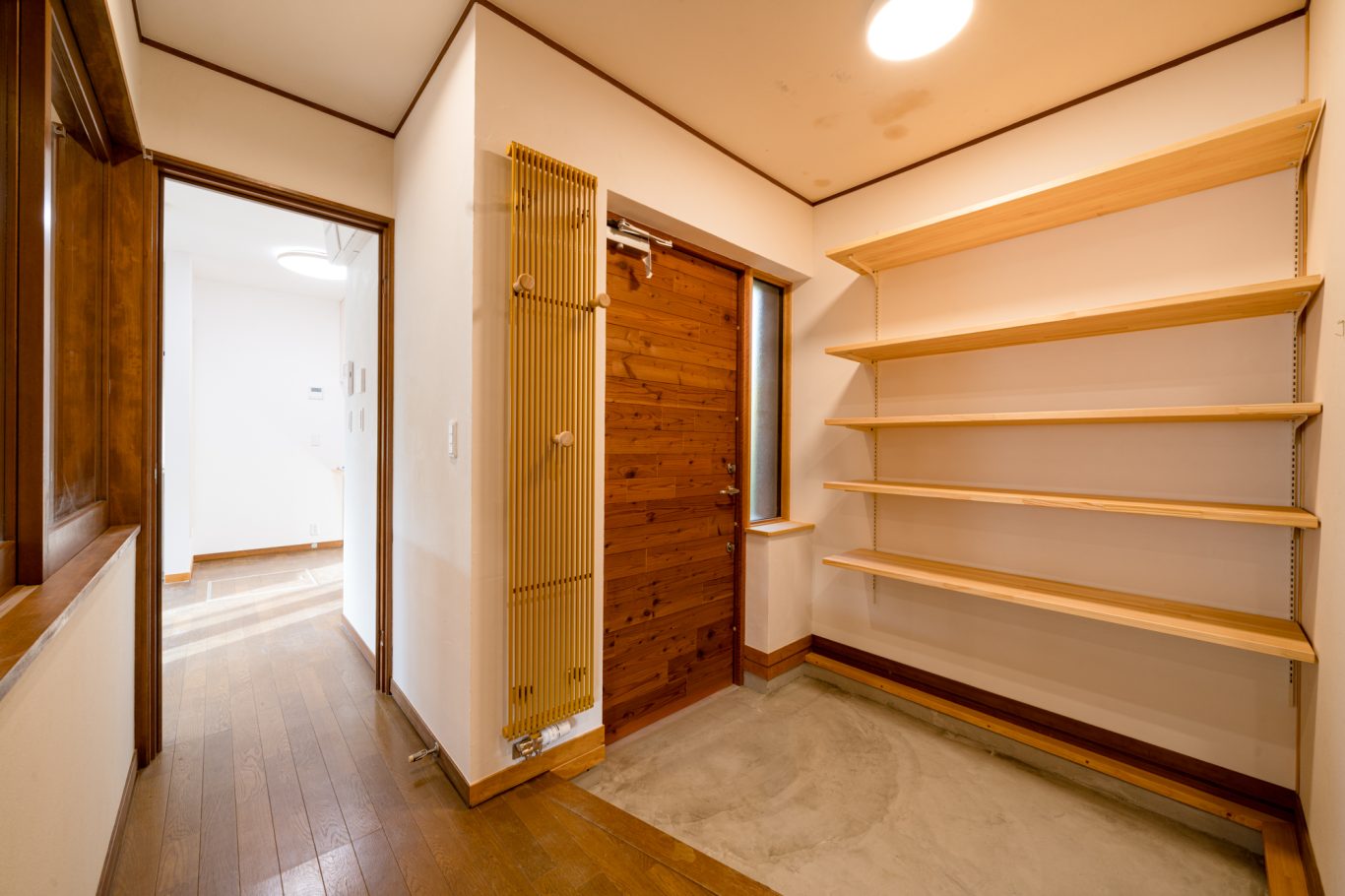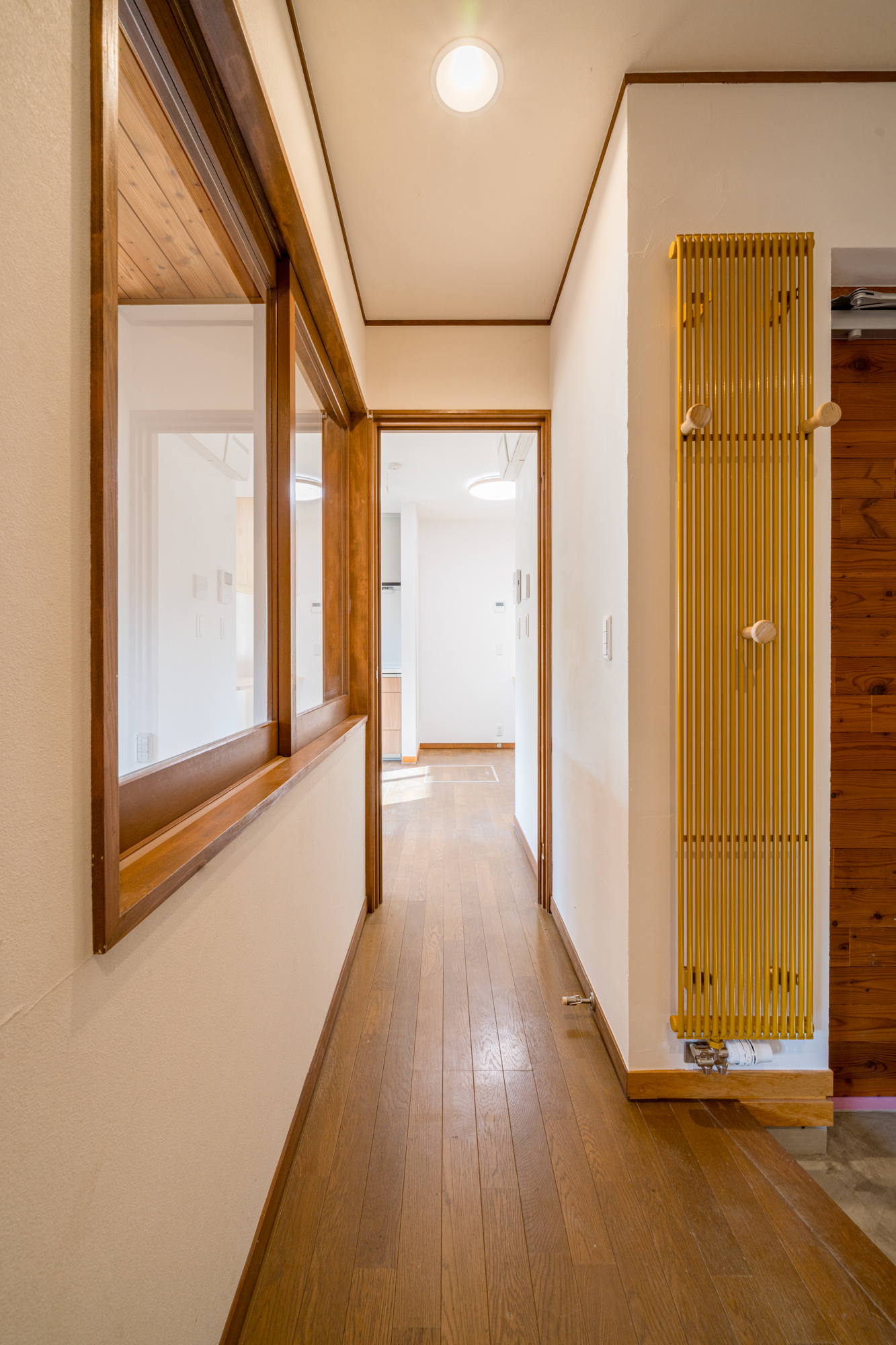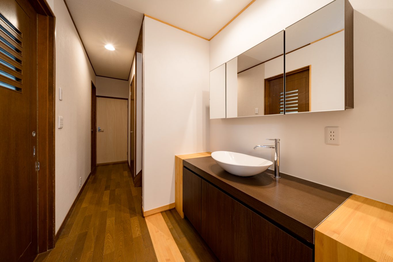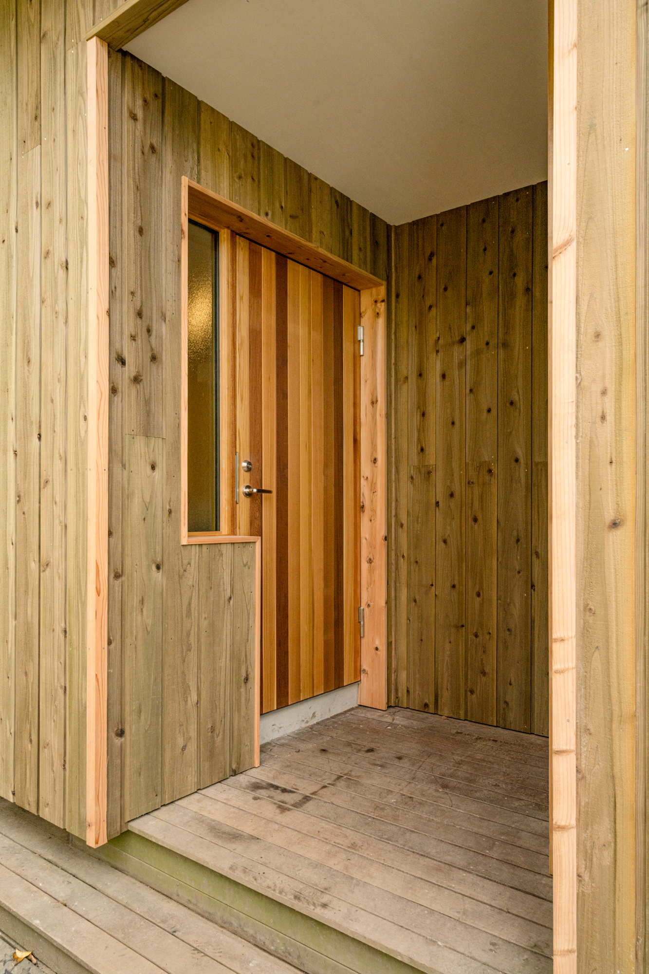 | 断熱 | Ua値:0.25 W/㎡K Q値:0.96 W/㎡K 暖房負荷:36.7 kWh/㎡ 外壁:HGW16K 180mm KYブラケット工法 天井:防湿シート+HGW16K(マット品)280mm(140+140) 床:吹込GW32K 300mm(床下側より・ユニットバス下共) 玄関は基礎内:スタイロエースII[3種B] 外100mm 内50mm 土間床50mm 樹脂サッシ:シャノンNS50 アルゴンガス入LOW-E 樹脂スペーサー 玄関ドア:ガデリウス スウェーデンドア Rebornオリジナル面材貼り =カラマツ羽目板・横張り |