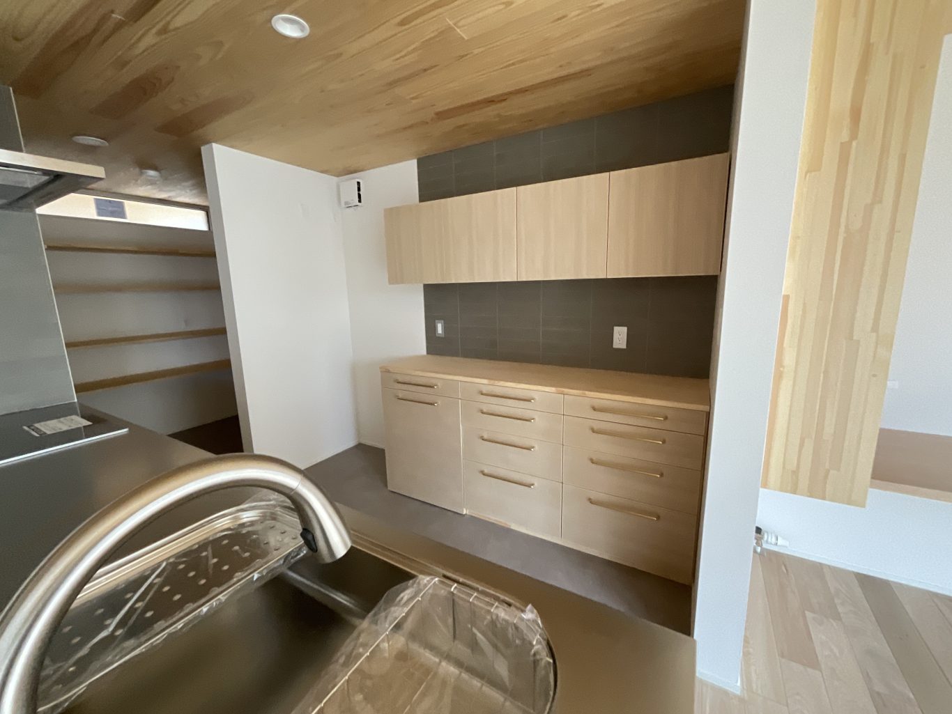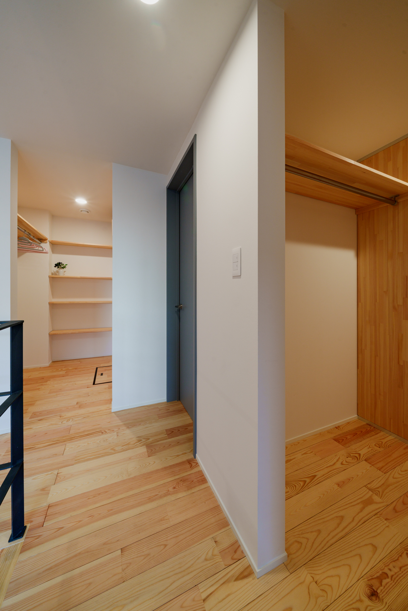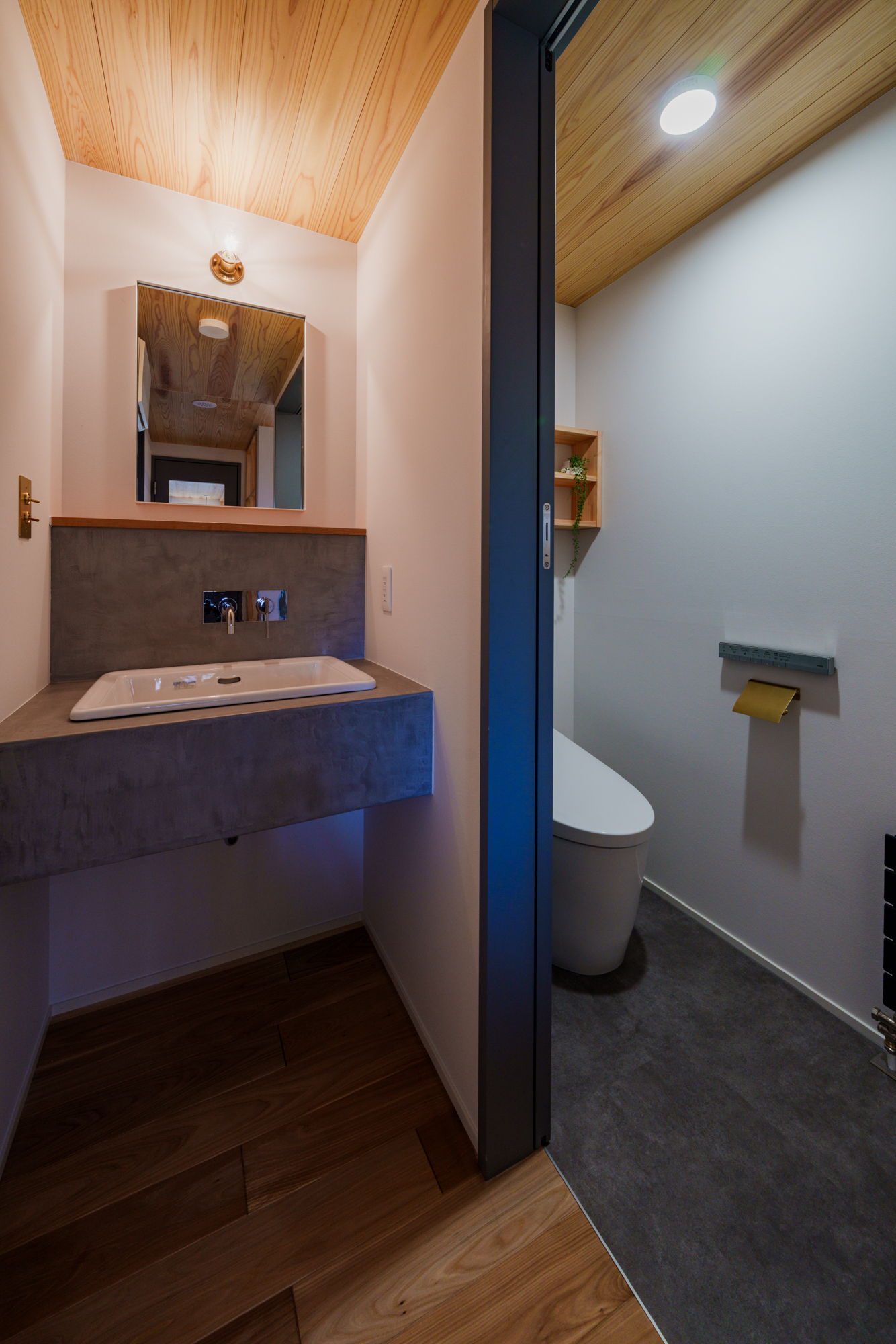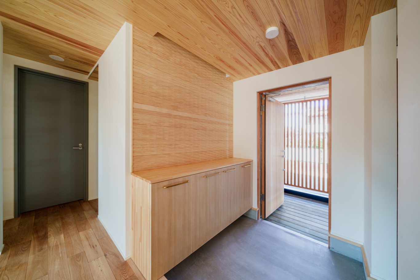 | 断熱 | Ua値:0.25 W/㎡K Q値:0.78 W/㎡K C値:0.4c㎡/㎡ 暖房負荷:16.5kWh/㎡ 外壁:HGW16K品 軸間105mm/外張り105mm KMブラケット 天井:吹込GW18Kニューダンブロー450mm 床:HGW16K品 245mm(根太間140mm+大引間105mm) 浴室・玄関 基礎内断熱:スタイロエースII 3種B 外100mm 内50mm 土間床50mm 樹脂サッシ:シャノンNS50 ガラス:ESクリアスーパー(アルゴンガス入りダブルLOW-E三層ガラス) 玄関ドア:ガデリウス スウェーデンドア Rebornオリジナル面材貼り =ベイツガ縦張り |