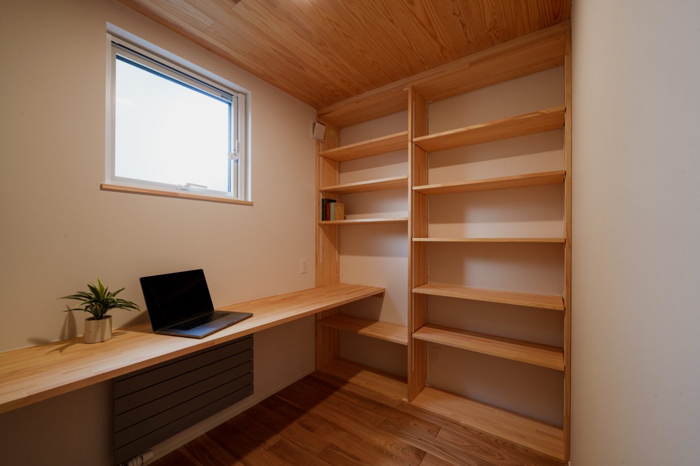いろんな要望をもとに燃費重視のリボーンらしい設計をしたら、いつの間にか年間暖房負荷16.5kw/㎡のパッシブなハウスになりました。リボーンの同等規模の家が通常30kw/㎡前後のところ16.5が出るのは、南側上下の大窓からの日射取得によるところ。高断熱・高気密住宅+日射コントロールにより快適性・省エネ・環境配慮を高次元で両立させる住宅です。